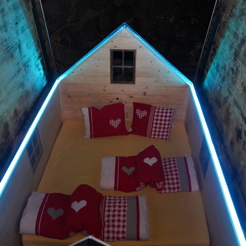 Für all diejenigen, denen Petrus nicht gut gesinnt ist oder später in der Nacht doch lieber ein Dach über dem Kopf haben möchten, kein Problem, du kannst direkt im Bett am Steuerrad drehen und das Dach schliesst sich. Die Farbe der Beleuchtung kann beliebig gewählt werden. Die Weidbox verfügt auch über eine Heizung.
