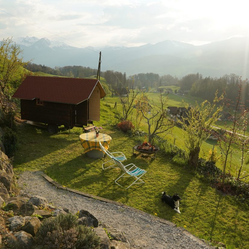 Inmitten von Bergen mit herrlichem Rundblick auf den Pilatus, Stanserhorn und das Sarneraataal gibt es auf dem Erlebnisbauernhof Weid in Kerns ein einmaliges Schlaferlebnis: