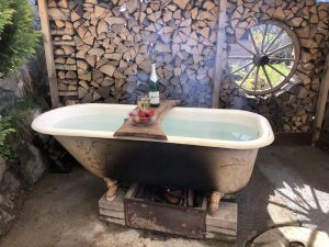 Inklusive Active Outdoor Wellness Erlebnis in der Fass-Sauna oder Badewanne (kann selber mit Holz erwärmt werden).